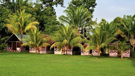 Jungle Resort Isadou is a small-scale resort on an island with very modest adapted traditional huts. The lodges each have a bathroom with shower and toilet and a private veranda with a view of the river. The lodges have two single beds, two double beds and mosquito nets.