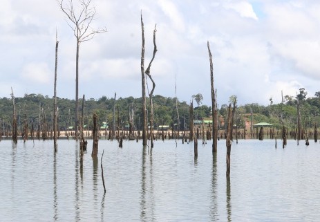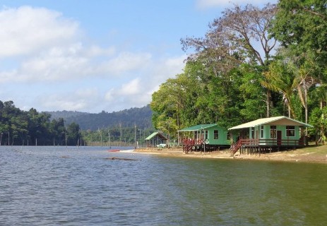 Ston Island is a peninsula located on the right bank of the Brokopondo reservoir. Characteristic of the lake are the tree tops that are decades old and protrude above the water since the dam has been closed. The spacious complex offers various sleeping options ranging from double accommodation to group accommodation for around 20 people which