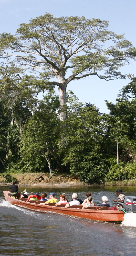 We take you on a journey in which the beauty of Suriname and its unique places become visible in a natural way, without many words. The jungle is the unique setting of a beautiful hiking area with giant trees, and the real jungle sounds of howling monkeys and parrots. Conquer ferocious rapids by boat and bathe in waterfalls. Become acquainted with the Maroon and AmerIndian culture. Other unique highlights include a jungle walk, spotting giant turtles laying eggs on the sandy beaches of the Atlantic Ocean and spotting dolphins and caimans.
